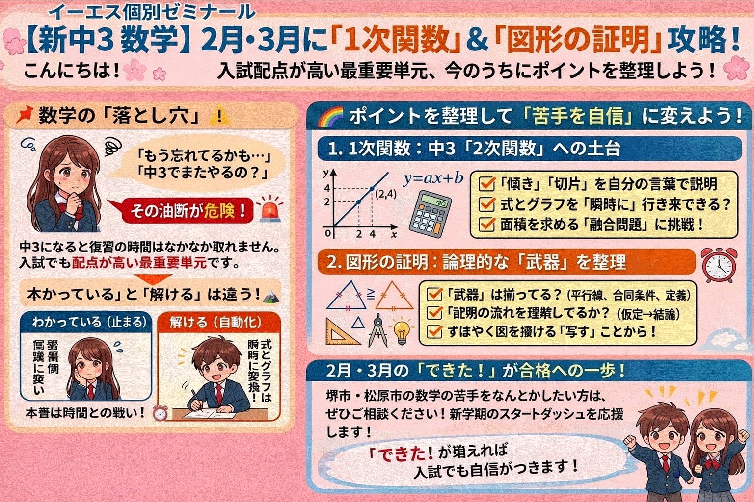 - ✅ 松原市・堺市の志望校合格を勝ち取る!