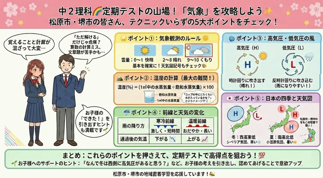中2理科🌈定期テストの山場!「気象」を攻略しよう✨|イーエス個別ゼミナール 堺市・松原市